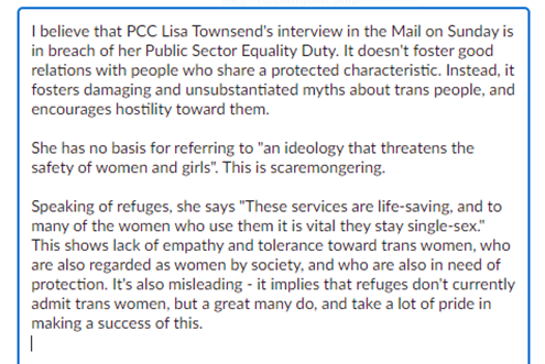 Lisa Townsend is the newly elected Police and Crime Commissioner for Surrey. Here’s what she said in an interview with the Mail on Sunday :